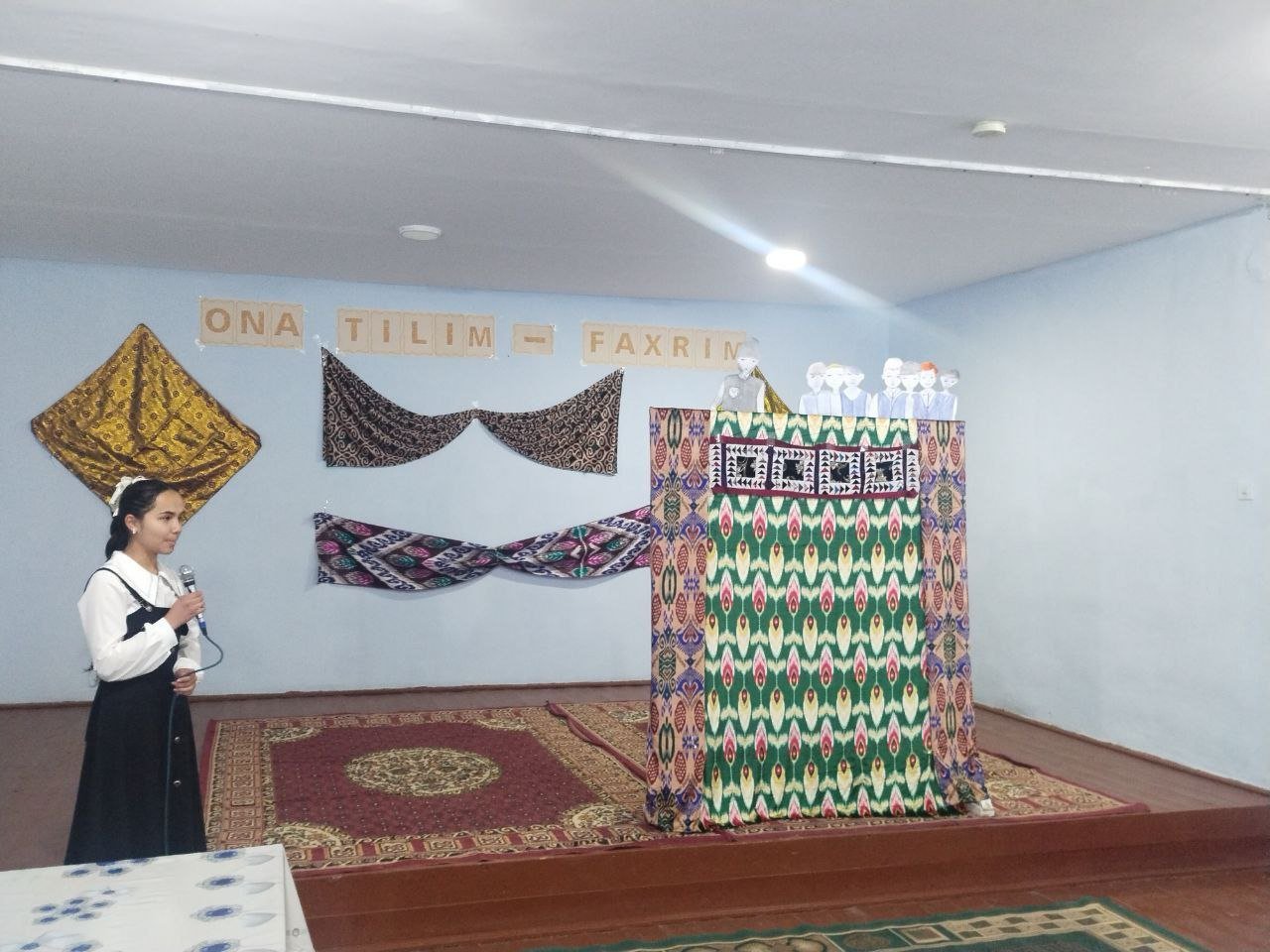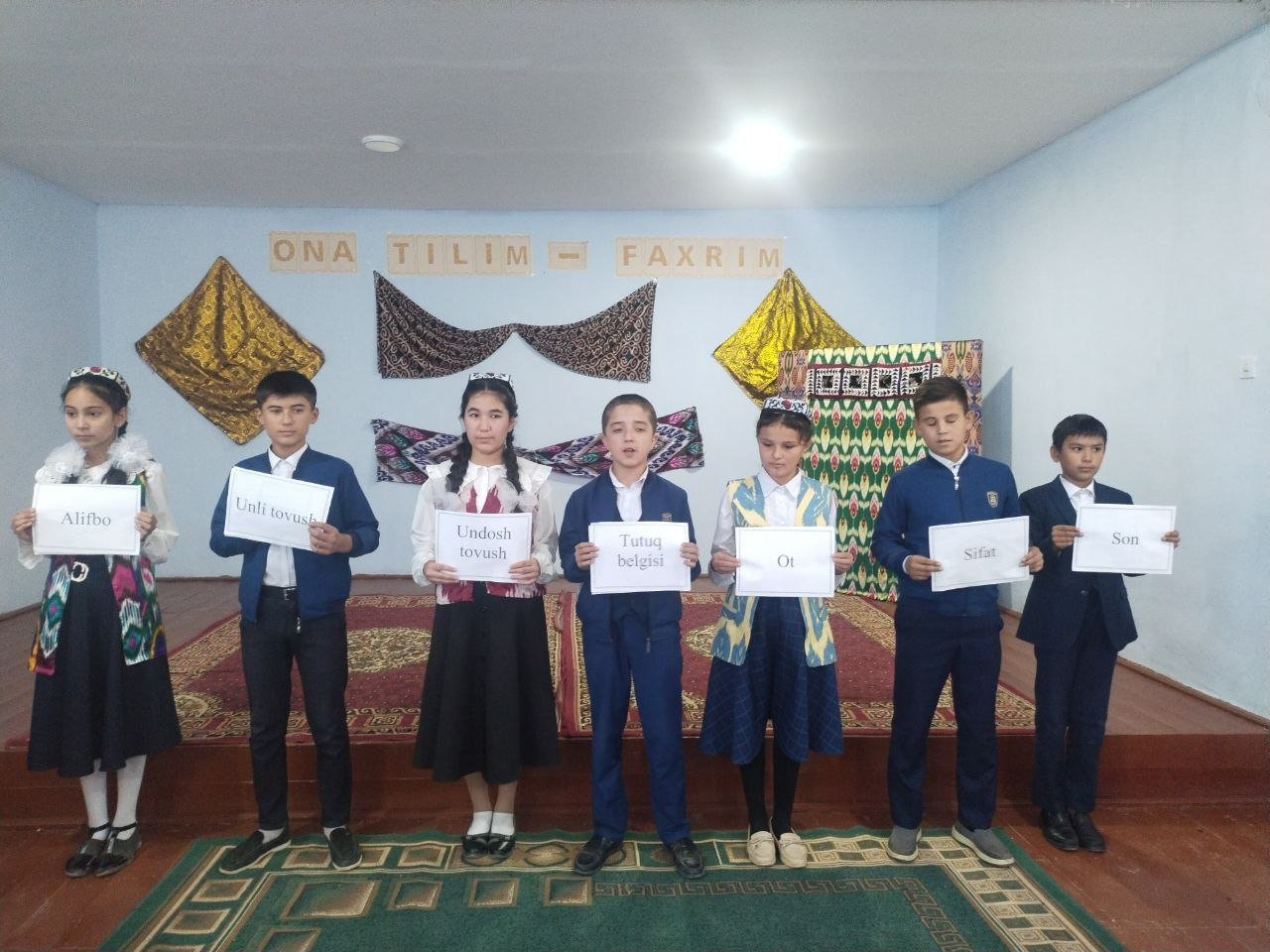E'lon va tadbirlar 31-10-2023, 18:31 #ona_tilim_faxrim_mening Xorazm viloyati Xonqa tumanidagi 49-sonli ayrim fanlar chuqur oʻrganiladigan ixtisoslashtirilgan maktabda o‘tkazilgan ʼʼOna tilim - faxrimʼʼ deb nomlangan tadbiridan lavhalar Sinf:6-7-8 Oʻqituvchilar: Jabborova Asal